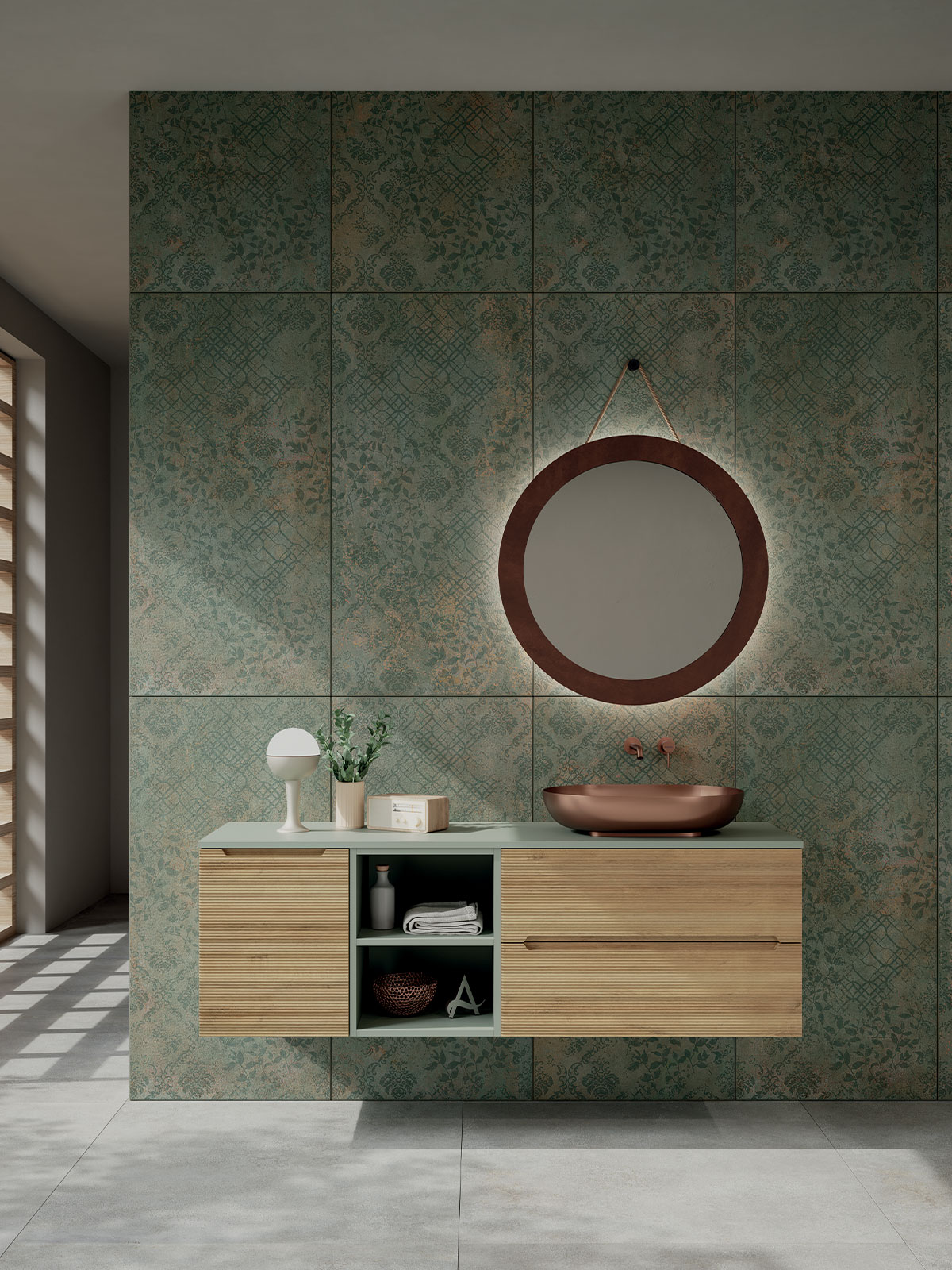 SPECCHIO TWIN IN ACCIAIO FINITURA CORTEN LED E CORDA