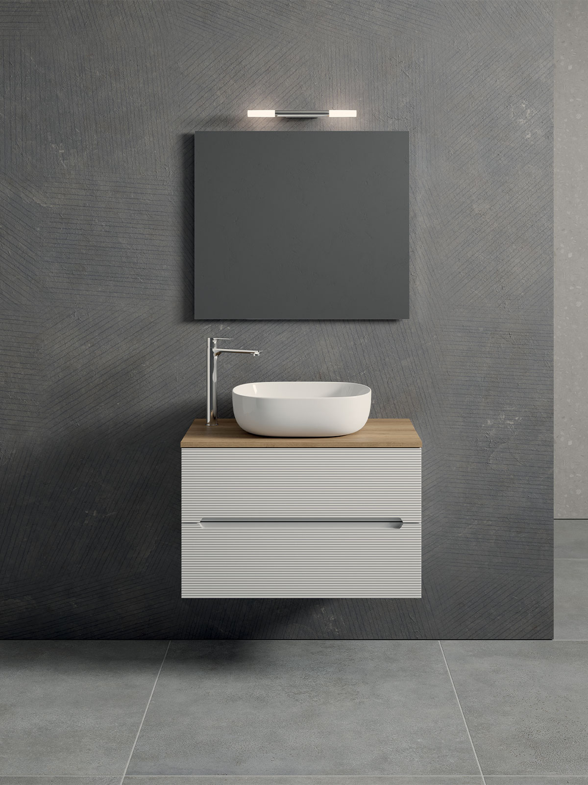 Base sospesa portalavabo 1 cassetto, struttura in agglomerato di legno con superficie in…