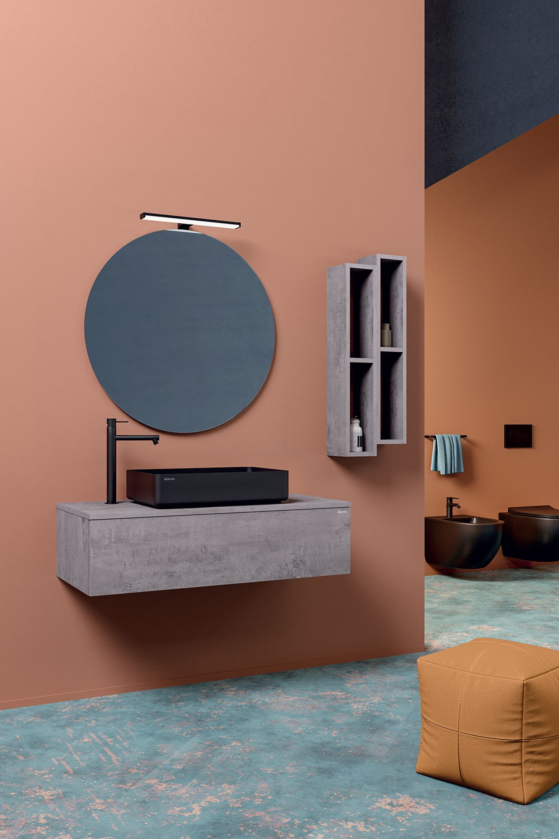 MOB938 Mobile sospeso LEAF 100 - L.100xH.25xP.45,5 portalavabo a 1 cassetto con apertura a pressione, senza top. Ossido roccia