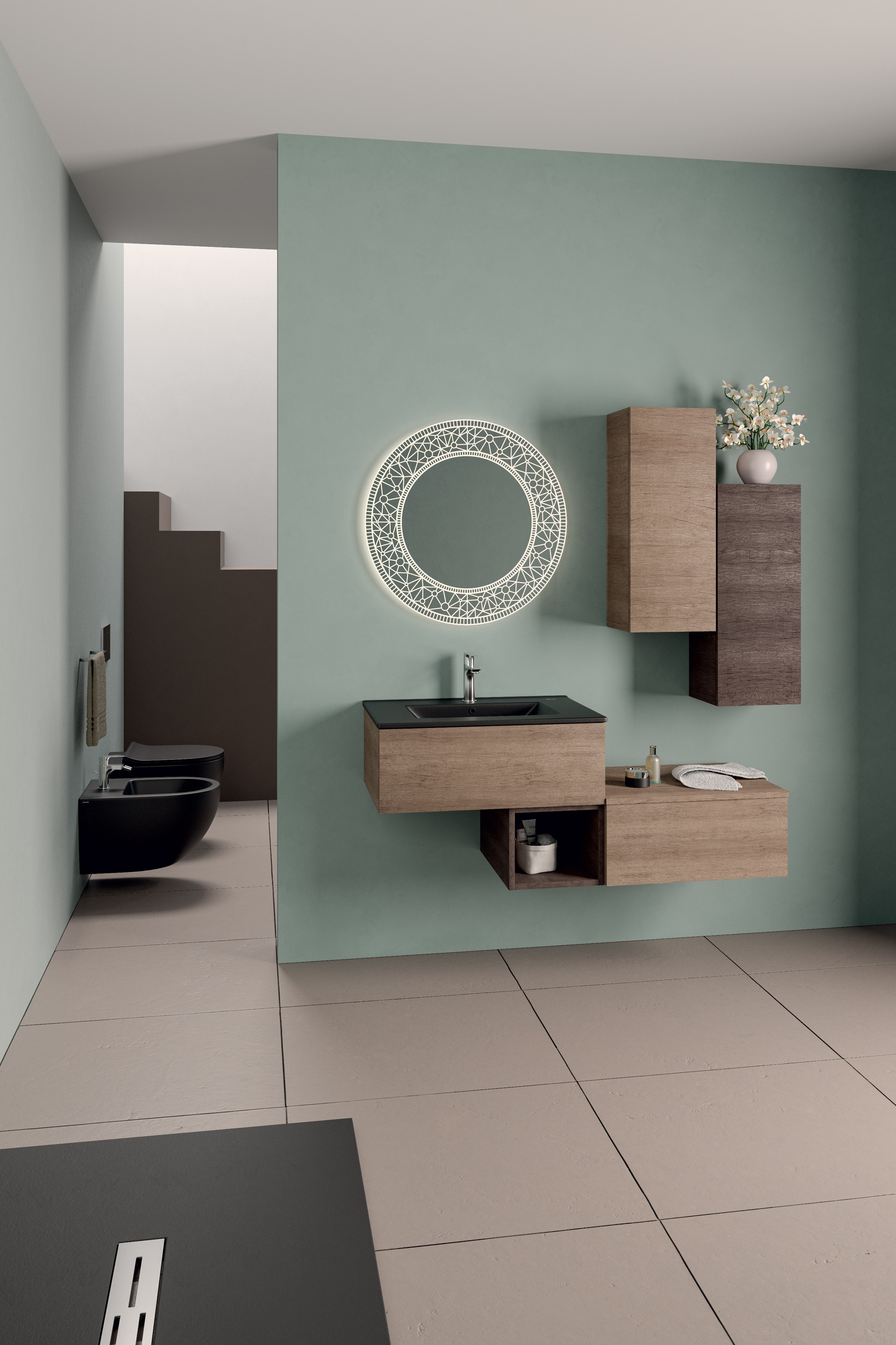 MOB262 + MOB263 Pensile sospeso H.74 (x2) - L.30xH.74xP.24,5 Olmo Naturale + olmo scuro