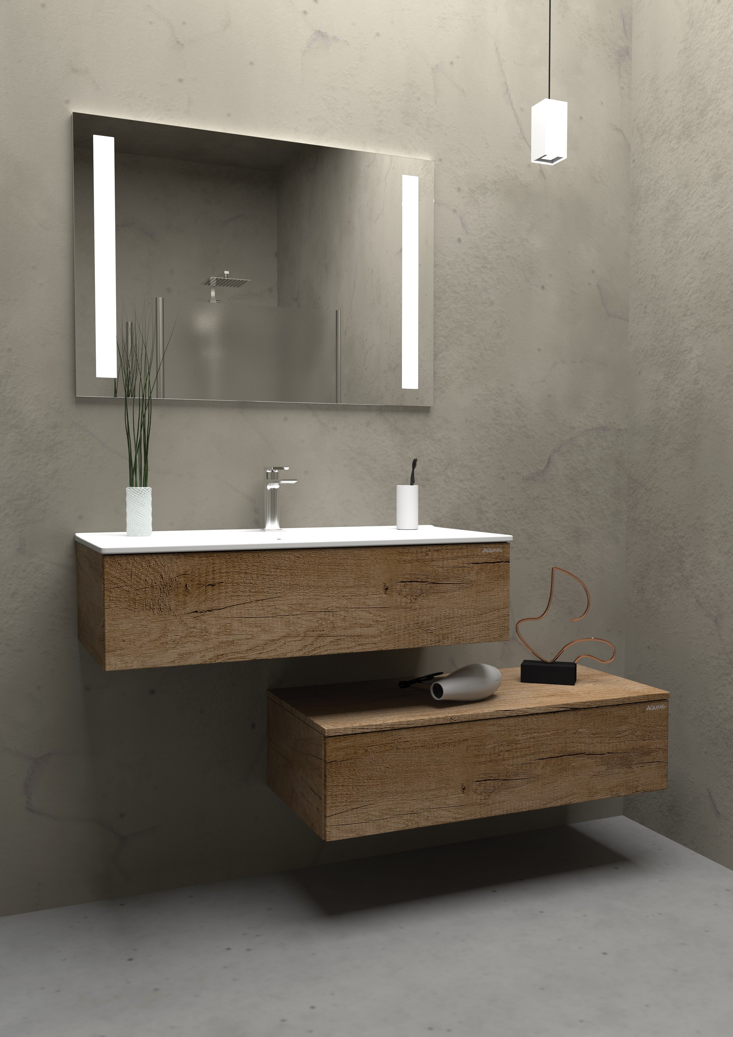 MOB976 Base senza top e vano sifone LEAF 100 - 100x46x25 ad 1 cassetto con apertura a pressione, senza vano sifone. Olmo naturale