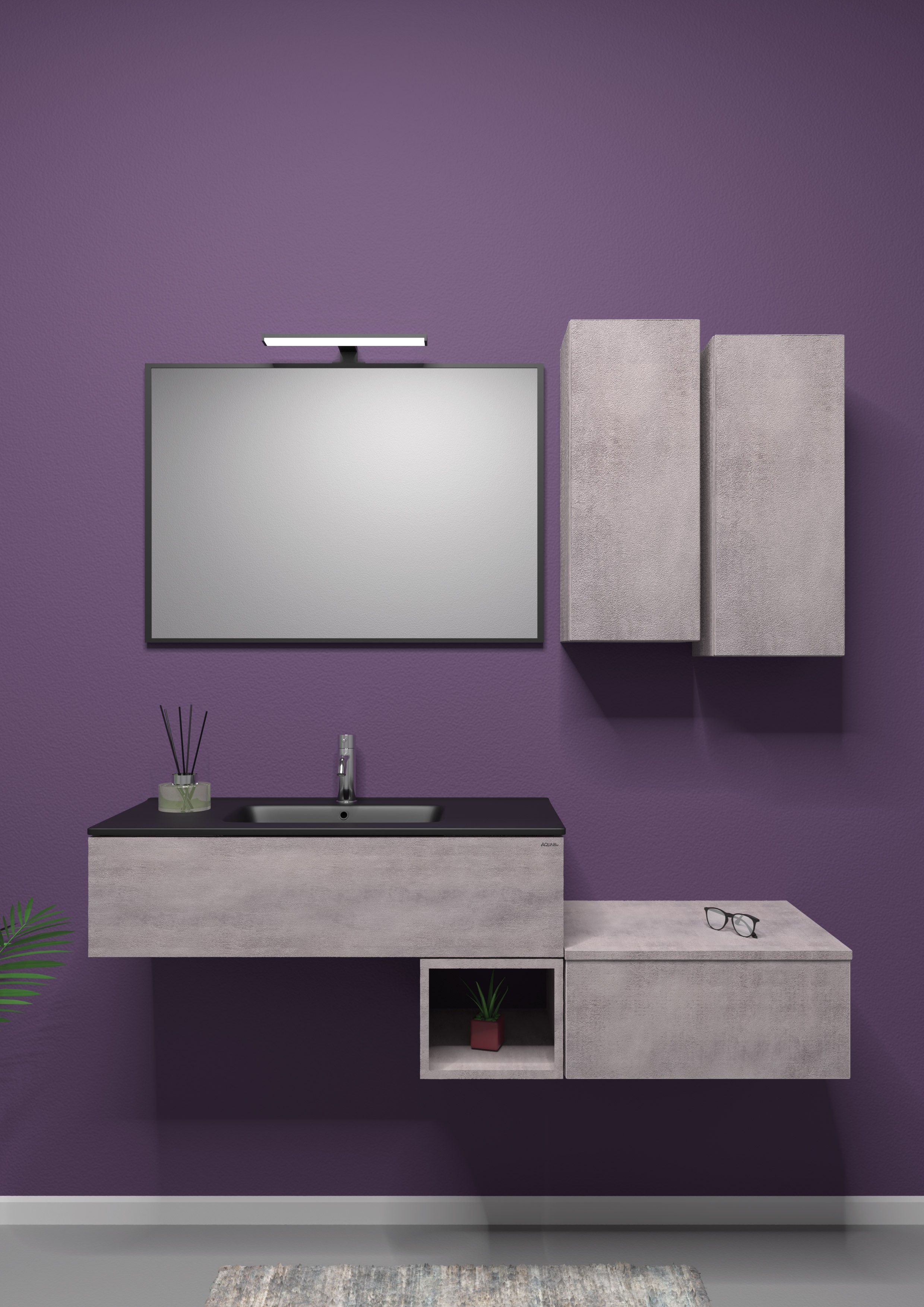 MOB938 Mobile sospeso portalavabo LEAF 100 - L.100xH.25xP.45,5 a 1 cassetto con apertura a pressione, senza top
