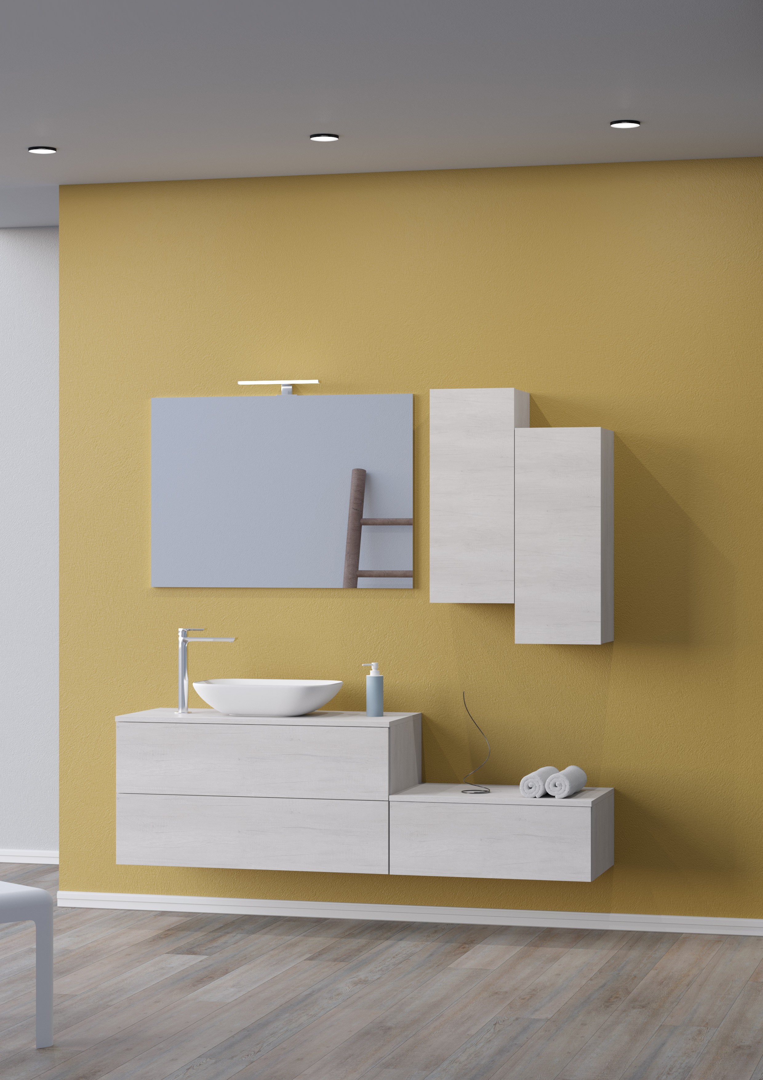 MOB321 Base senza top e vano sifone LEAF 70 - 70x46x25 ad 1 cassetto con apertura a pressione, senza vano sifone Olmo Bianco