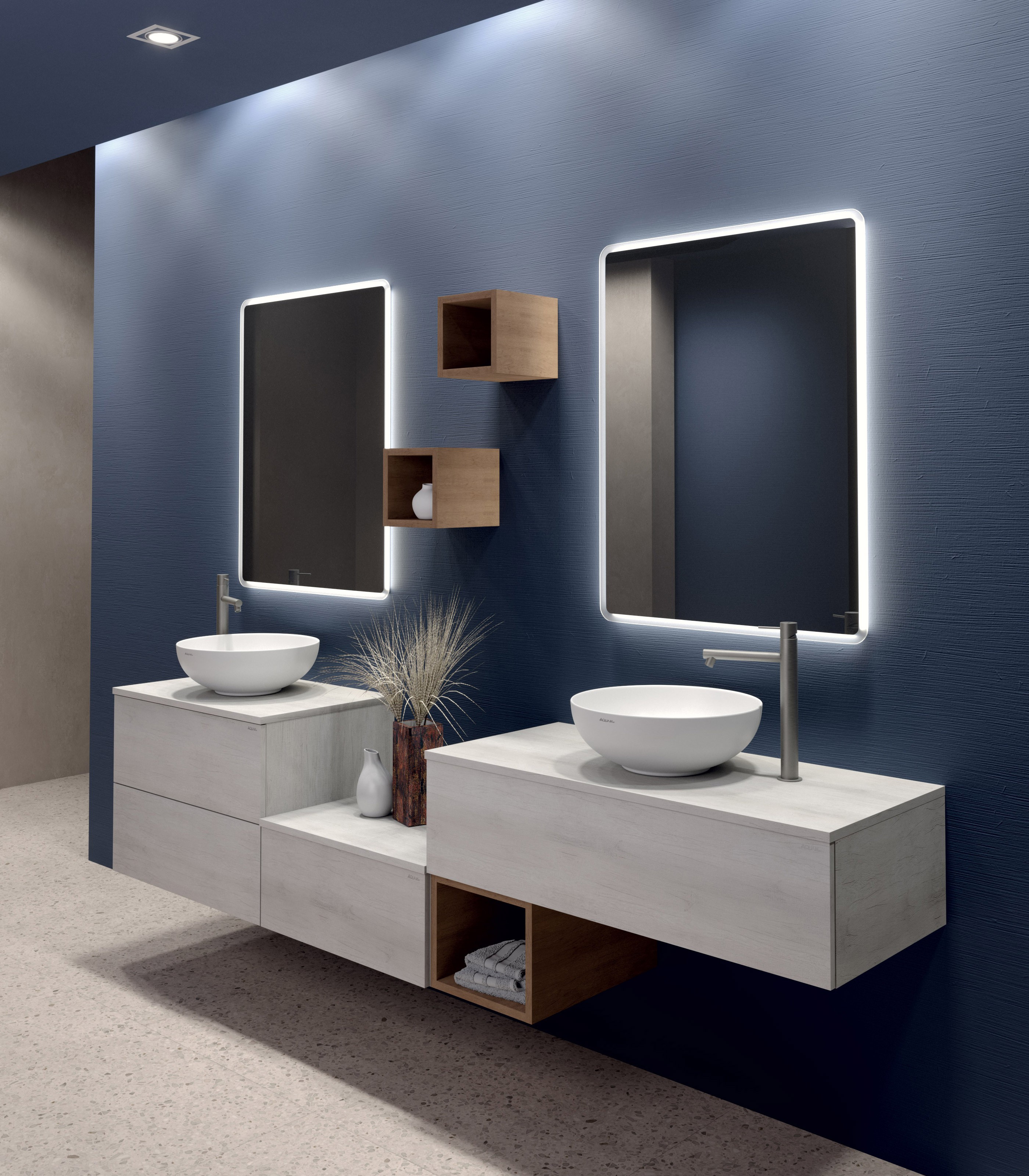 MOB457 Specchio LED 60 (x2) - L.60xH.70xP.2,0 Specchio con luce perimetrale integrata.