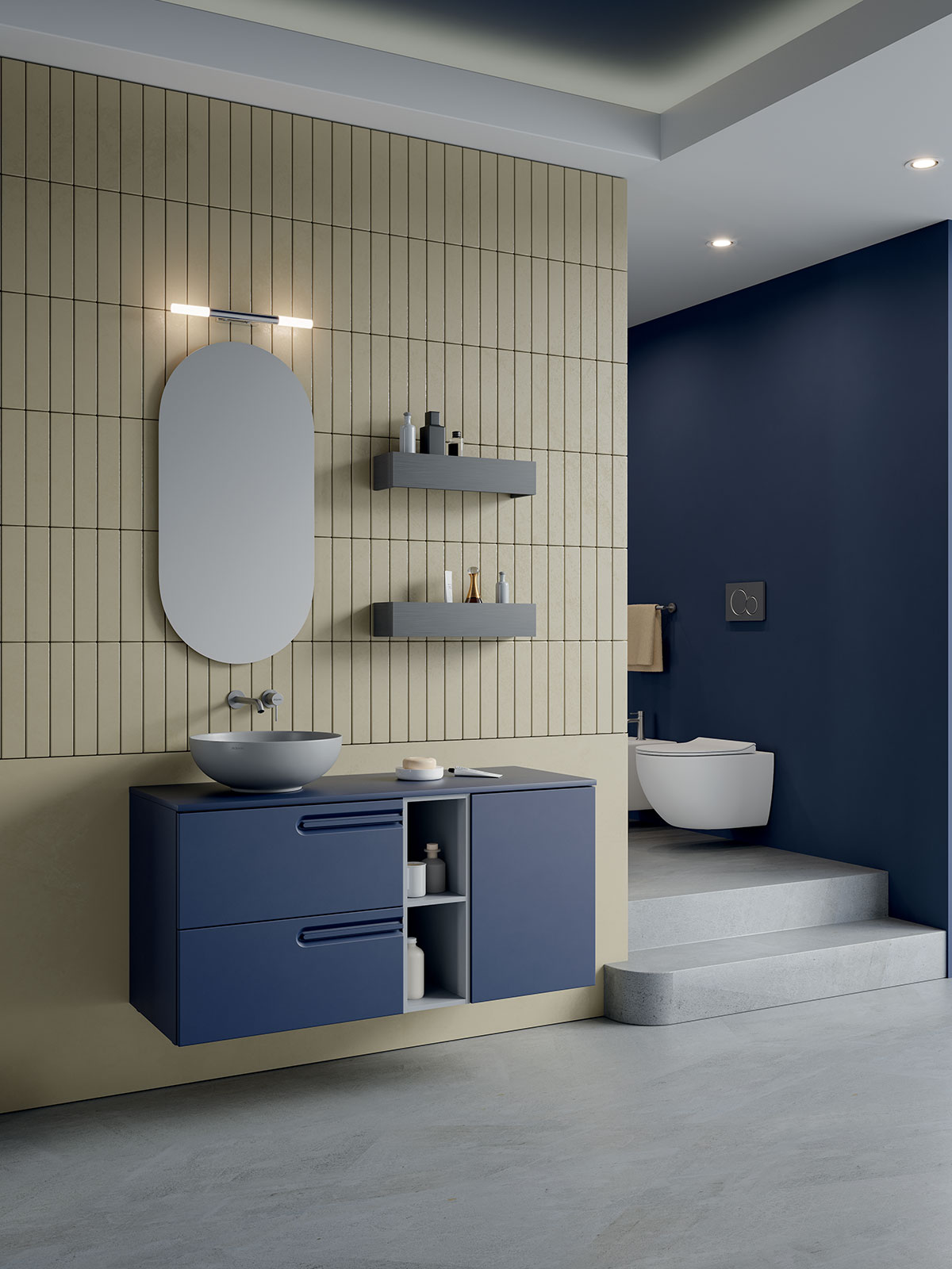 Base sospesa portalavabo 2 cassetti, con organizer, maniglia integrata a gola, cassetti a…
