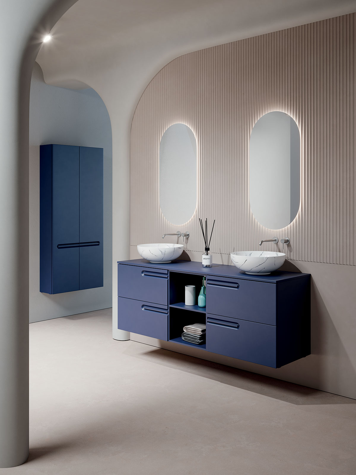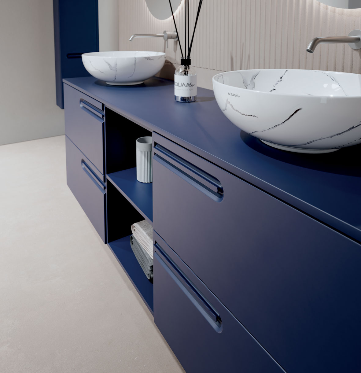 BASE PURO PORTALAVABO 2 CASSETTI 80 BLU OPACO