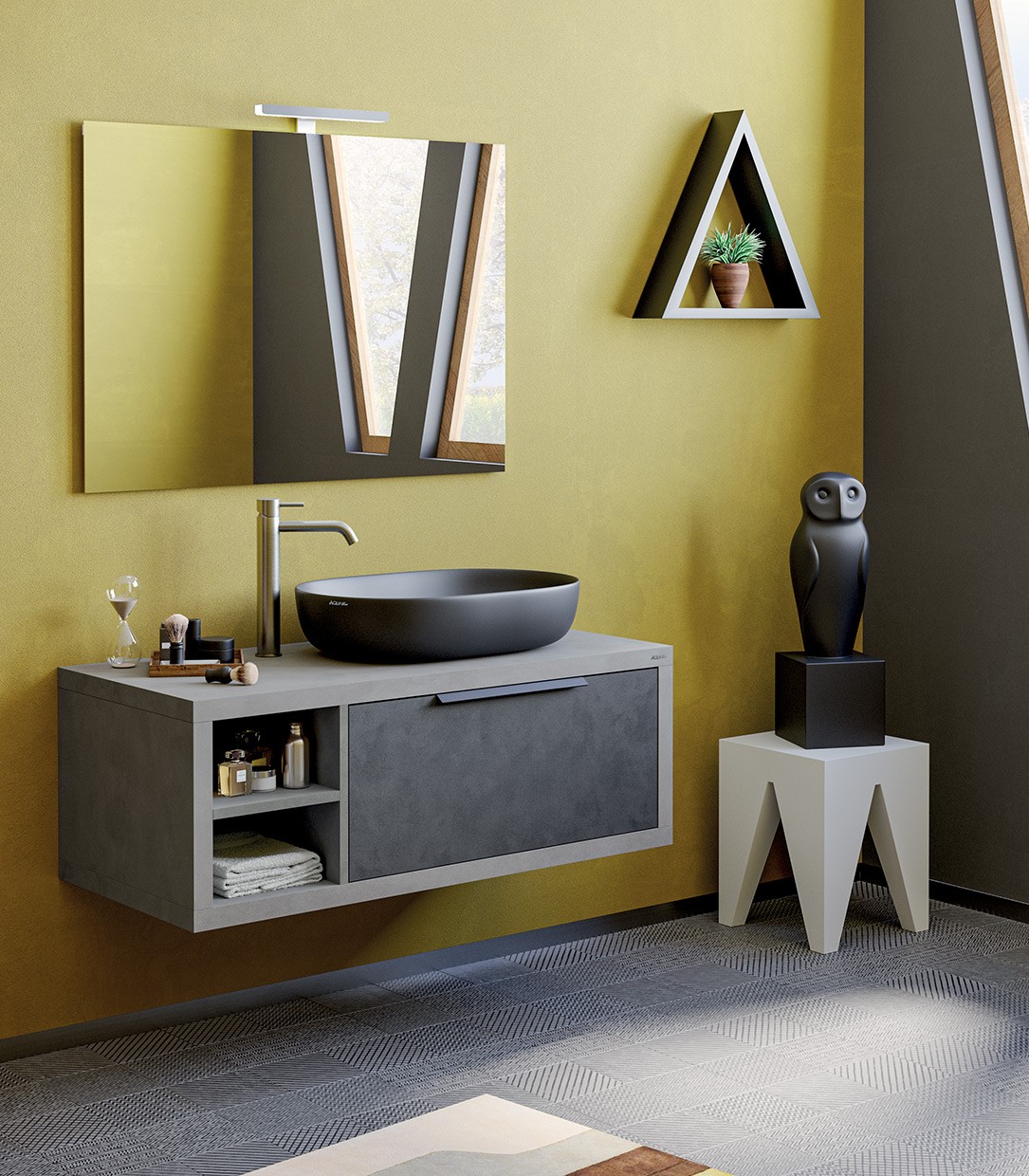 MOB427 Consolle sospesa a giorno QUBO110 Cemento Grigio Caldo