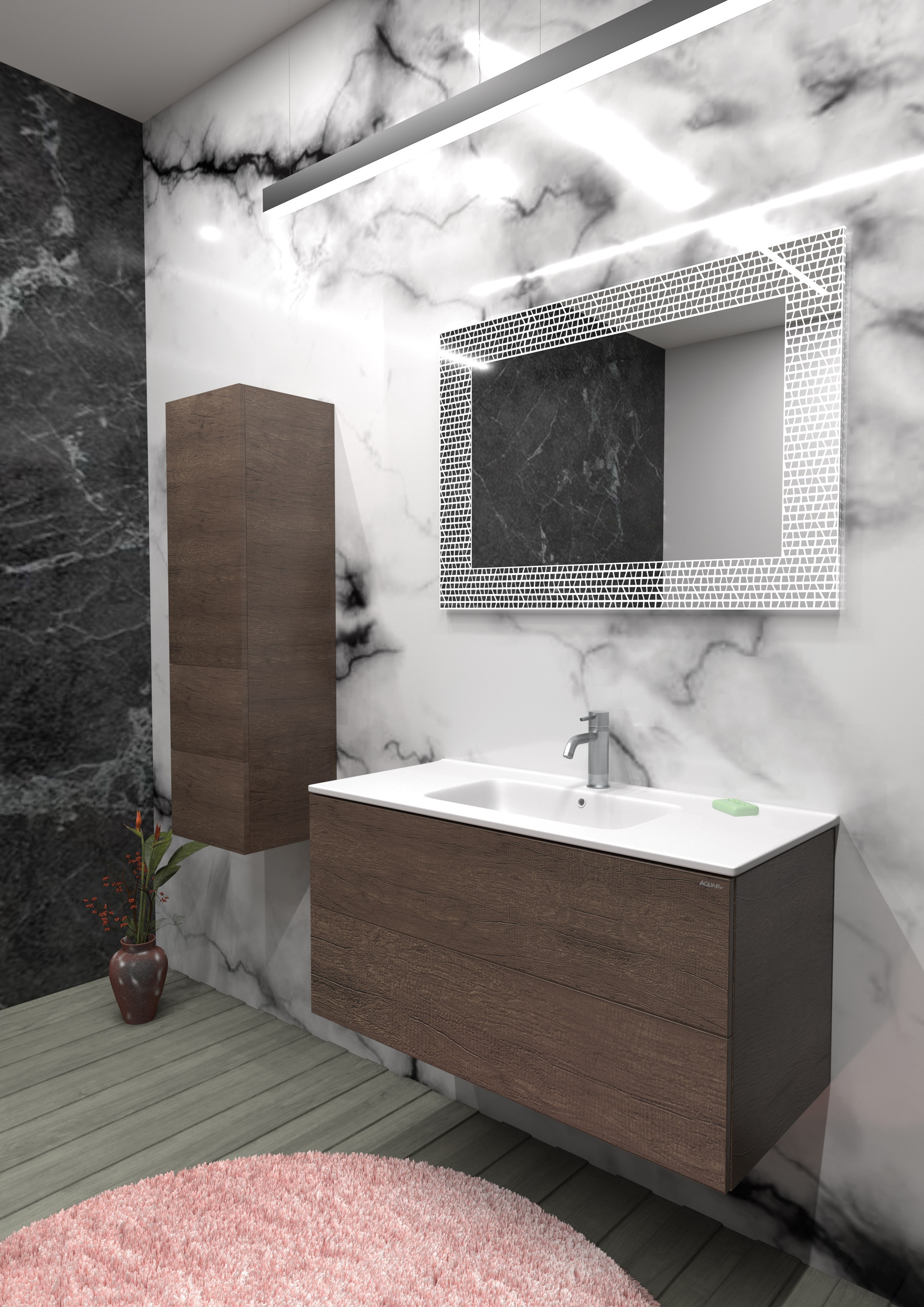 MOB296 Mobile sospeso LEAF 100 - L.100xH.50xP.45,5 portalavabo a 2 cassetti con apertura a pressione, senza top Olmo Scuro
