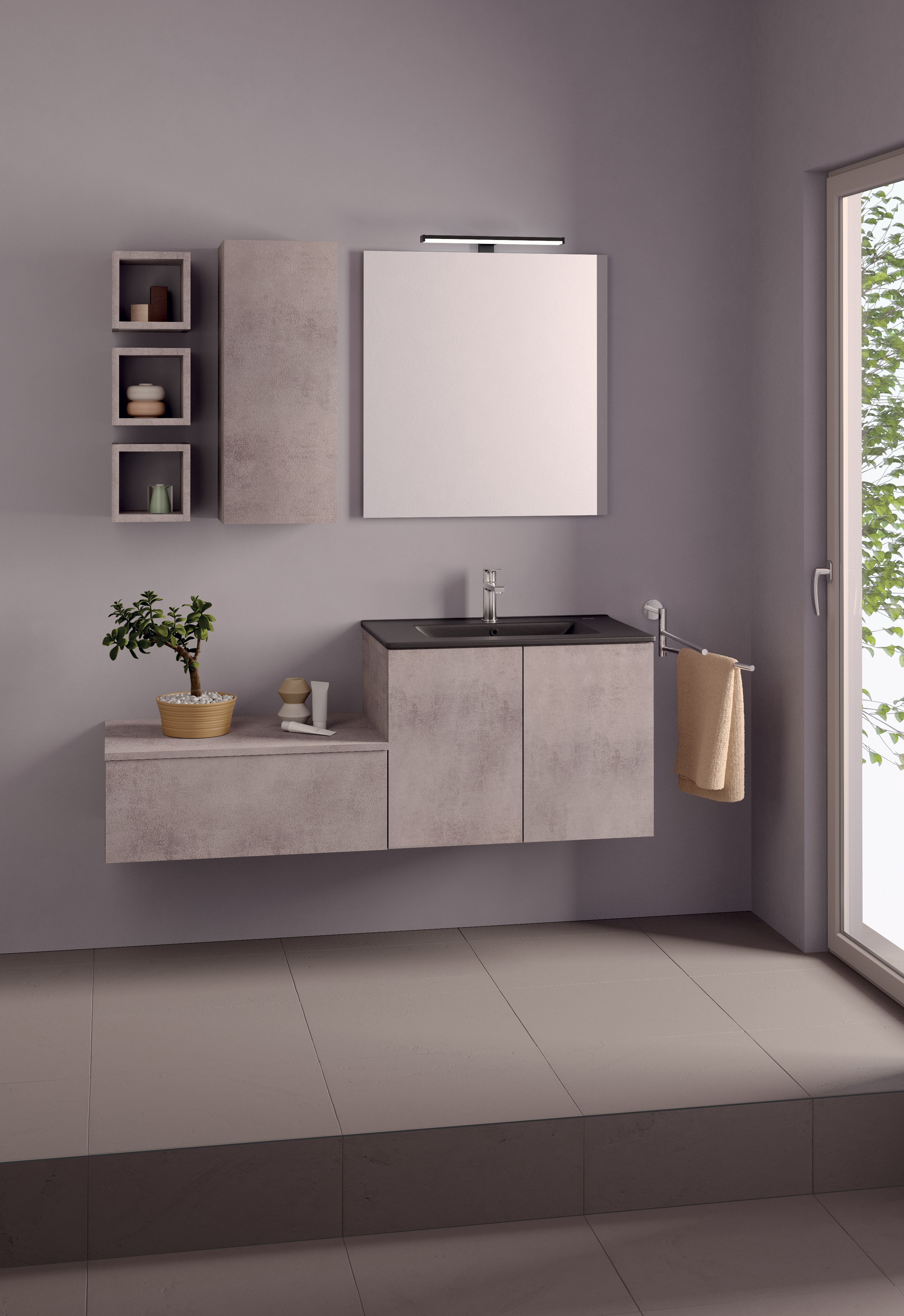 MOB943 Mobile sospeso portalavabo a 2 ante con apertura a pressione, senza top Mobile sospeso LEAF 70 2 ante - L.70xH.50xP.45,5 Ossido roccia