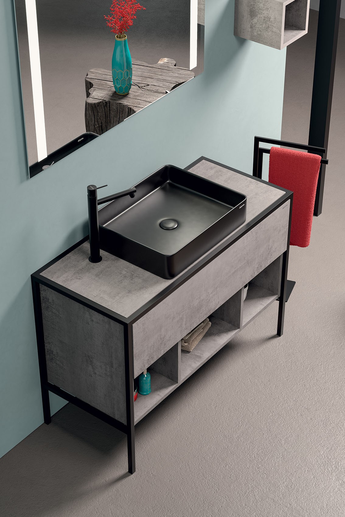 MOB929 Struttura in ferro LEAF 104,5 - L.104,5xP.45,5xH.74,5 Struttura in ferro per top e basi, per lavabi ad appoggio. Nero opaco