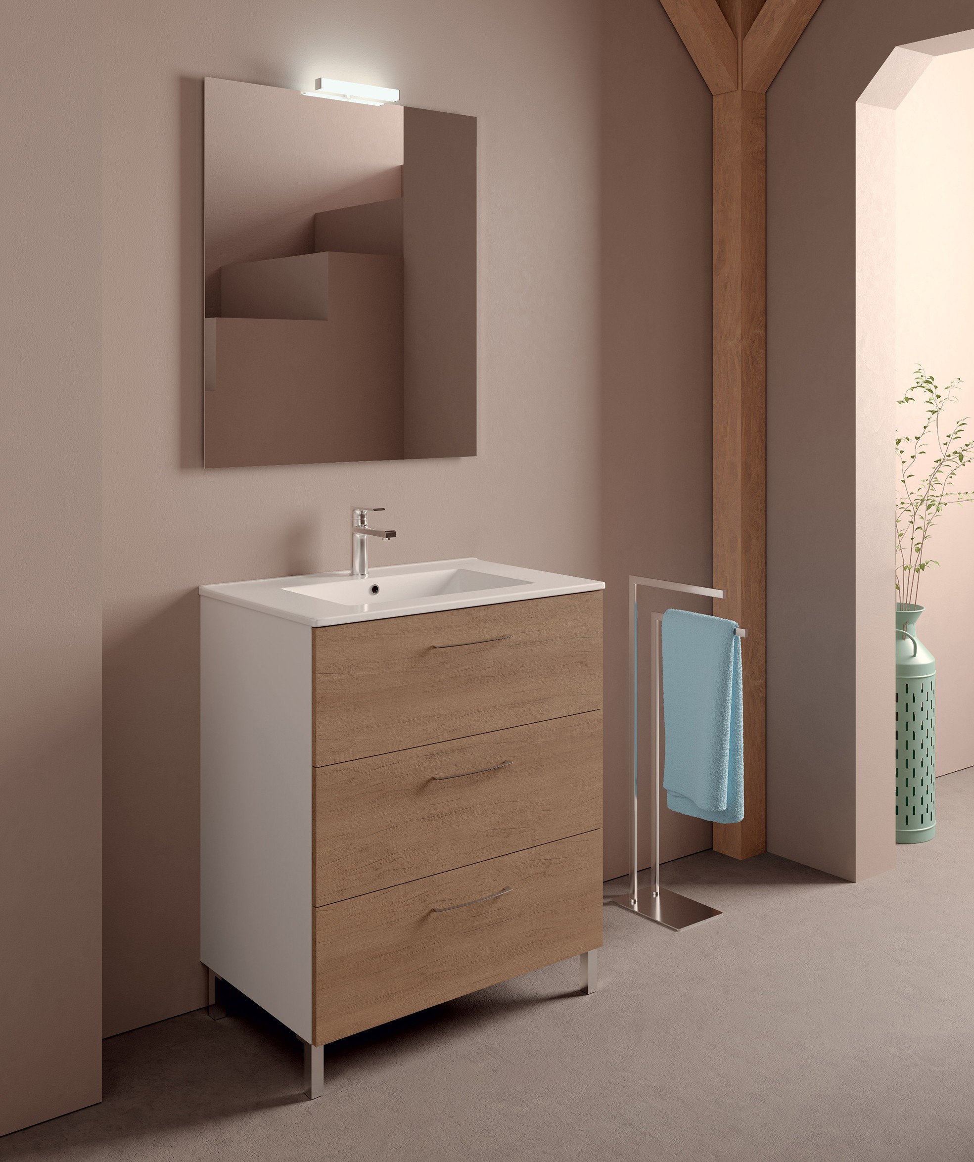 MOB339 Mobile con piedi LEAF 70 - L.70xH.84xP.45,5 Base con piedi portalavabo a 3 cassetti chiusura soft close, con maniglia in metallo.