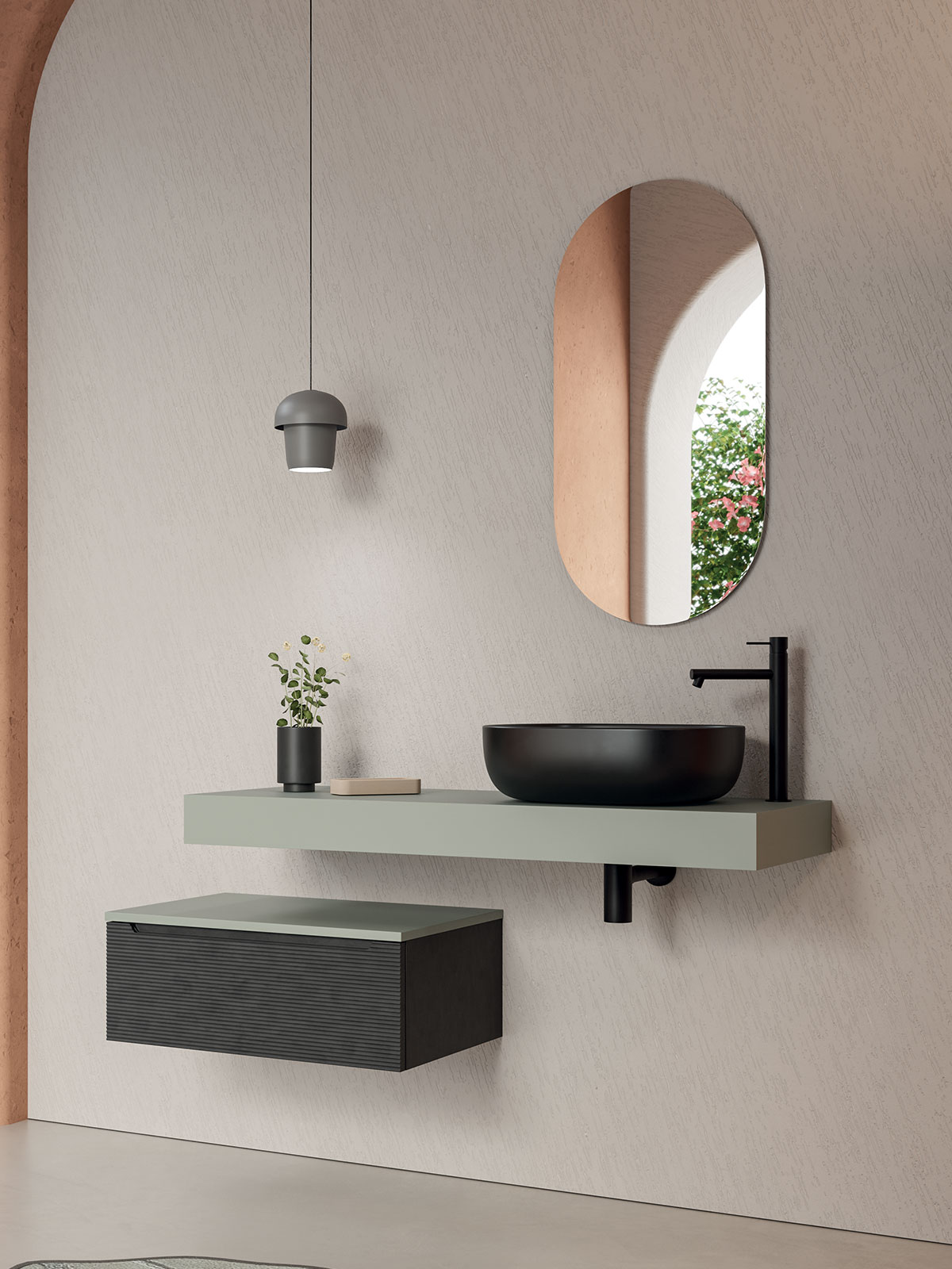 BASE PORTALAVABO A TERRA 2 CASSETTI IKON VERDE OPACO