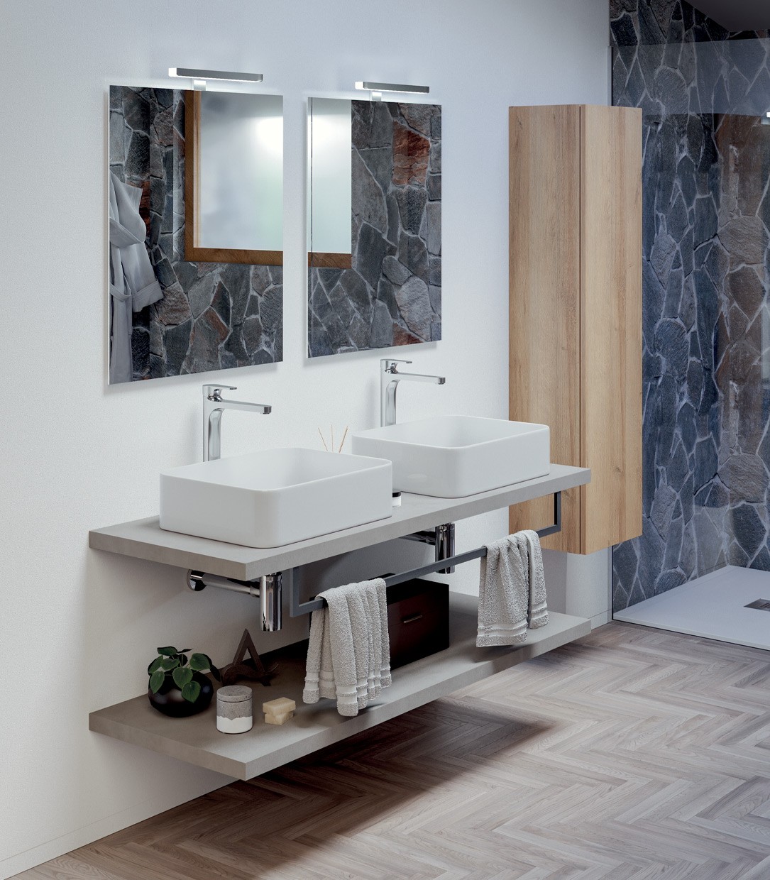 MOB078 Top legno QUBO 140 (x2) non forato, senza staffe, Cemento Grigio Cielo