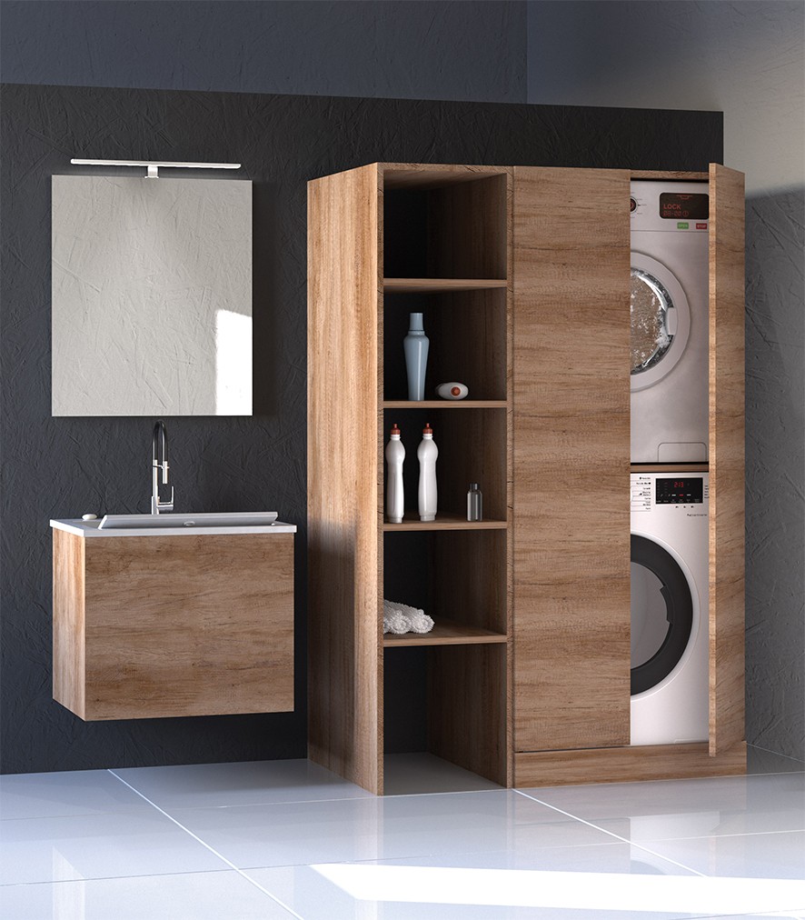MOB956 Colonna da terra 70 cm H.174 a 2 ante per inserimento lavatrice / asciugatrice - L.70xH.174xP.70 olmo naturale