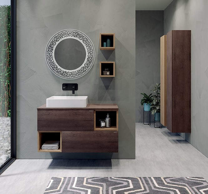 MOB272 Mobile sospeso LEAF 70 - L.70xH.25xP.45,5 portalavabo a 1 cassetto con apertura a pressione, senza top