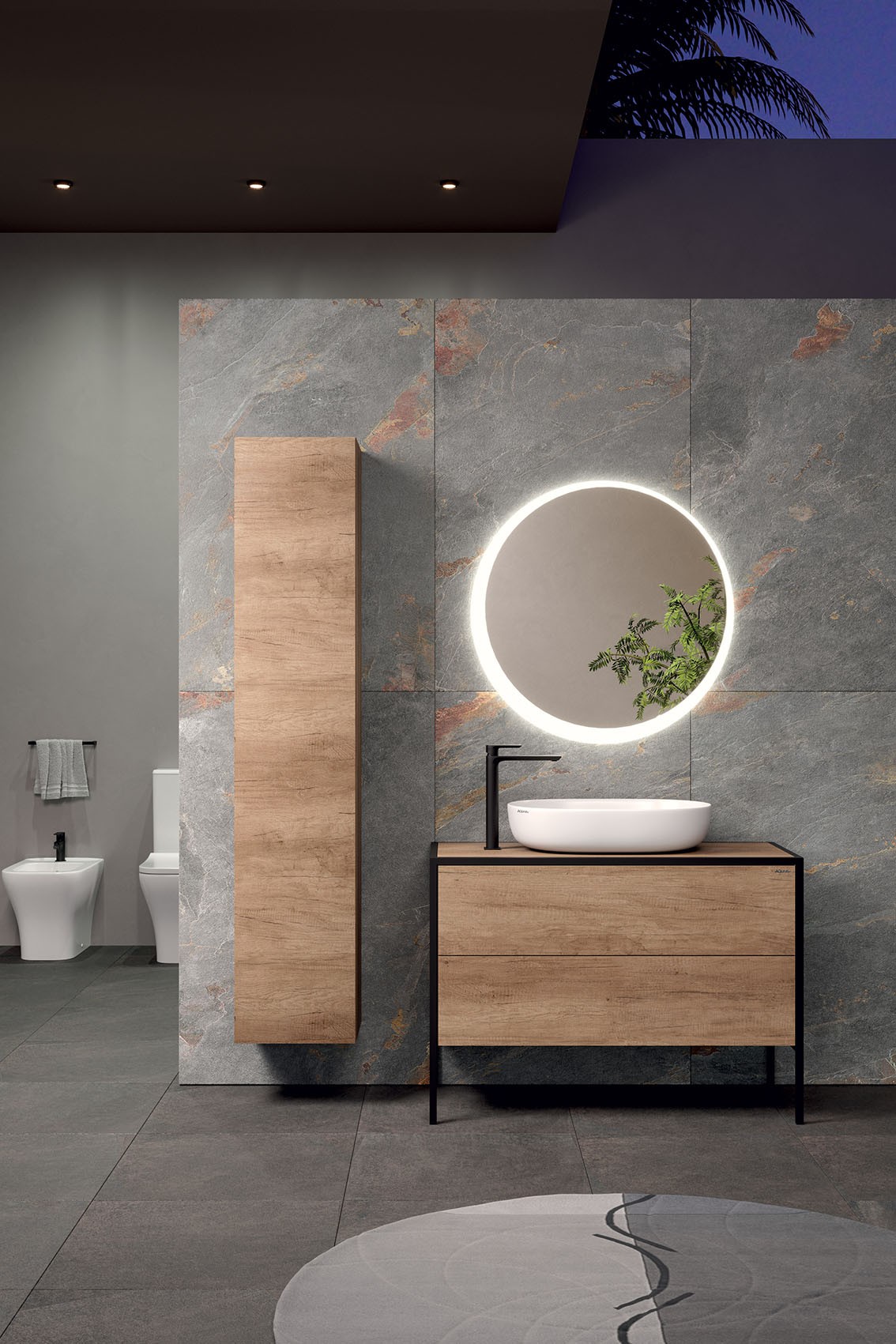 MOB277 Colonna  sospesa 35 reversibile - L.35xH.174xP.32,5 a 1 anta apertura a pressione reversibile Olmo naturale