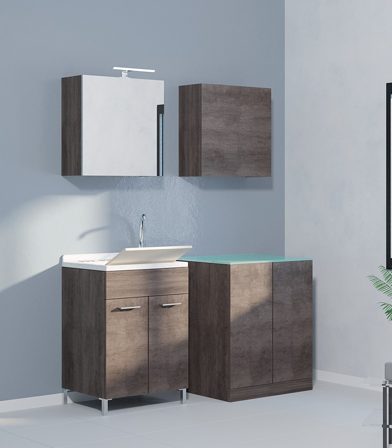 MOB311 Mobile a terra portalavatrice a 2 ante senza top - L.69xH.85xP.60,5 Olmo Scuro