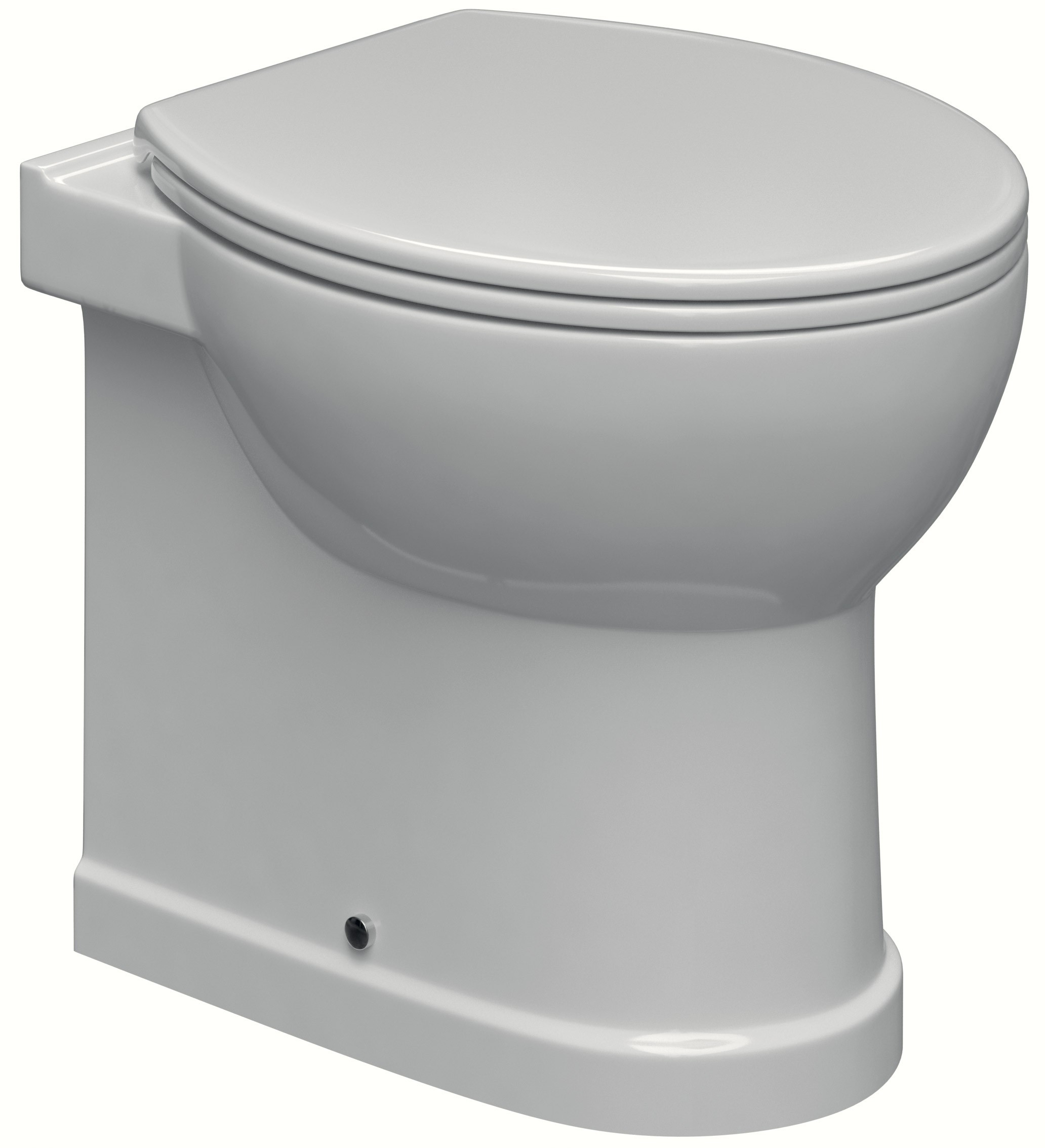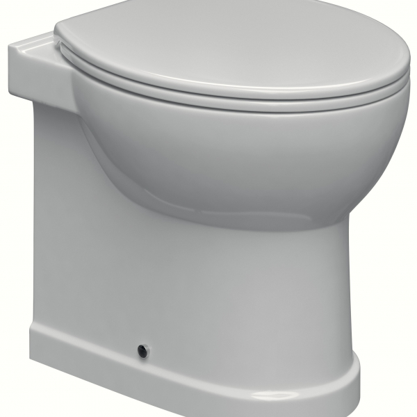 Vaso per cassetta alta scarico multi, installazione a terra filo parete, senza sedile e senza curva.