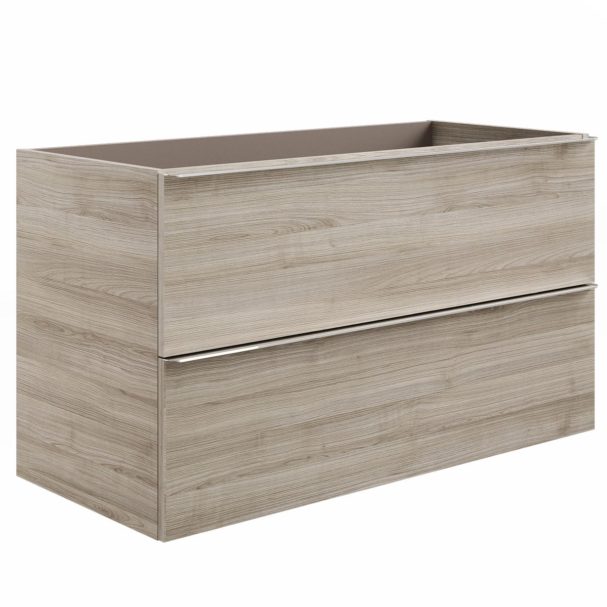 Base sospesa a 2 cassetti, laterali e frontale in MDF con maniglia in metallo cromo, con chiusura soft close.