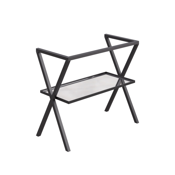 Cavalletto in metallo con ripiano in vetro.  Misura: L.80 x P46 x H.70