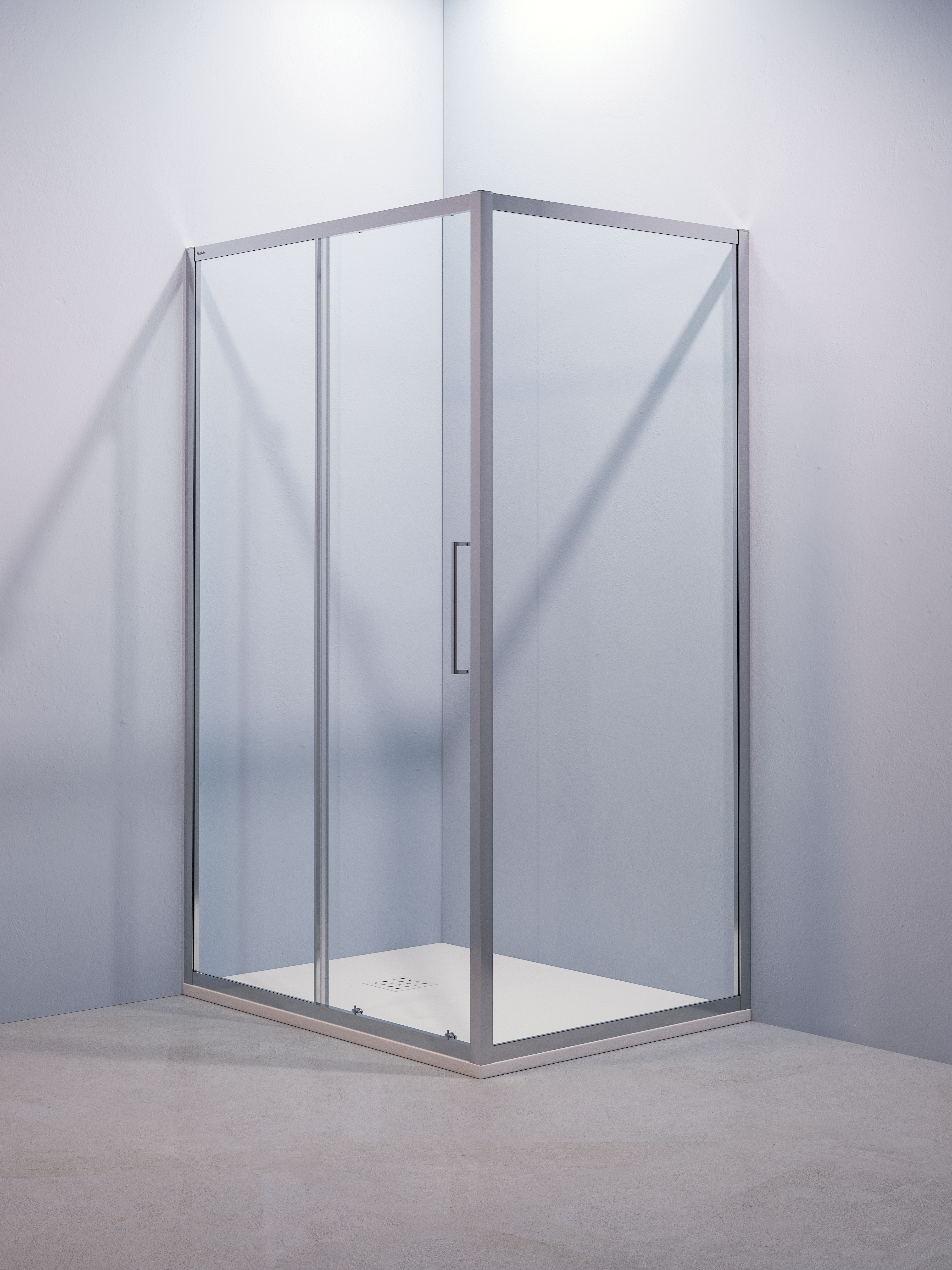 lastra in Cristallo temperato da 6 mm Trasparente. Profilo in alluminio lucido minimal 37 mm spessore 1,2mm color cromo. Abbinabile esclusivamente