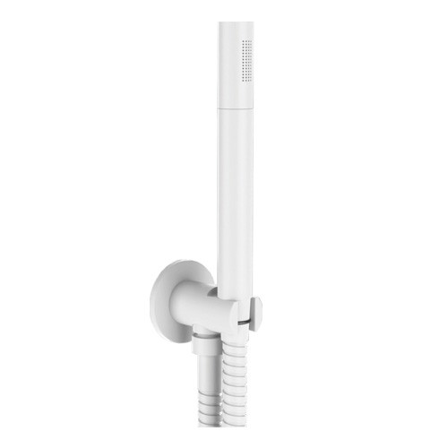 Kit doccia MINIMAL TONDO composto da: doccetta in ottone monogetto, flessibile 1500 mm, supporto a muro con presa acqua 1/2" in ottone.