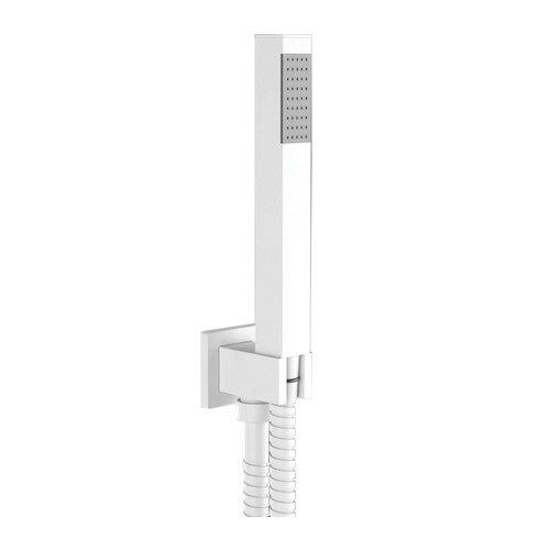 Kit doccia MINIMAL QUADRA composto da: doccetta in ottone monogetto, flessibile 1500 mm, supporto a muro con presa acqua 1/2" in ottone.