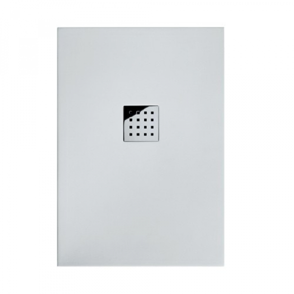 Consistenza siile alla sabbia finissima e completamente antiscivolo (classe 3); completo di piletta doccia sifonata DM 90 con scarico orizzontale e griglia metallica quadra cromo lucido.