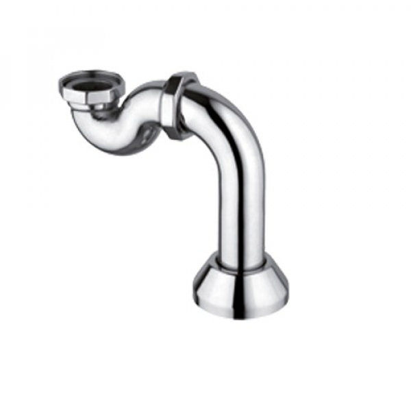 Sifone in ottone cromato completo di curva a pavimento e rosone, per vasca a vista.