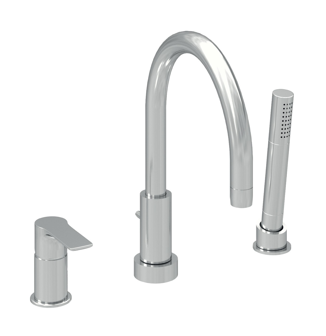 Miscelatore monocomando bordo vasca 3 fori con bocca, deviatore, doccetta in ottone e flessibile.