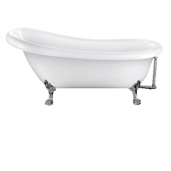 Vasca in acrilico senza idromassaggio, con piedi cromo, installazione centro stanza.